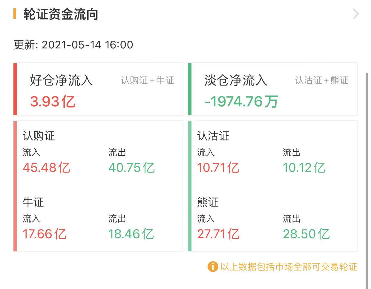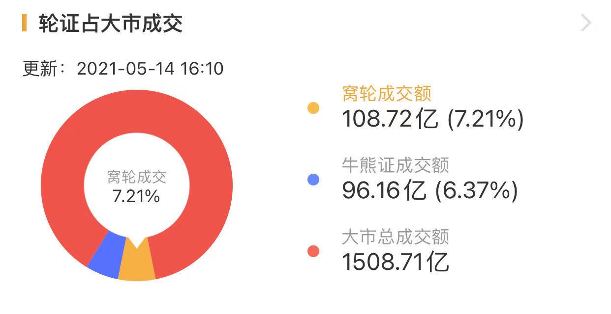 其中,窝轮总成交108.72亿港元,牛熊证总成交96.16亿港元。