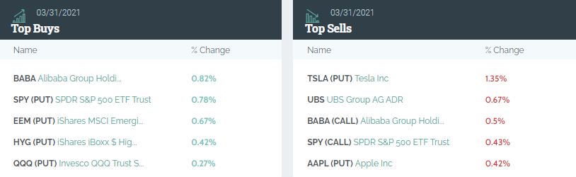 瑞银减仓最多的是特斯拉看跌期权、瑞银集团、阿里巴巴看涨期权、标普500指数ETF看涨期权和苹果的看跌期权。