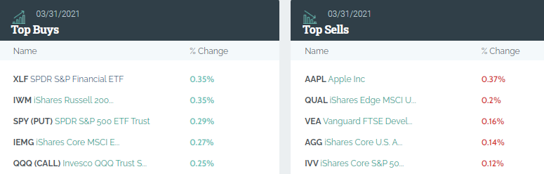 富国银行增仓最多的是:SPDR金融行业ETF、iShares罗素2000 ETF、标普500指数ETF看跌期权、iShares新兴市场core ETF和纳指100ETF看涨期权。同时减仓最多的是苹果、iShares安硕MSCI美国质量因、先锋EAFE指数ETF、iShares全美债市ETF和iShares标普500ETF。