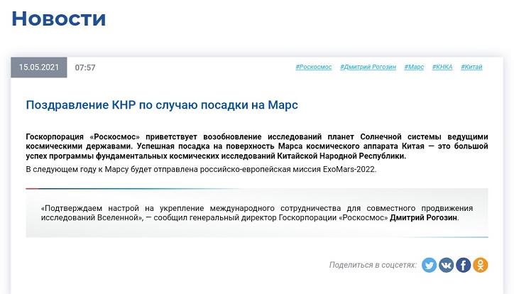 原标题:俄罗斯航天局祝贺中国航天器在火星表面成功着陆 来源:央视新闻客户端
