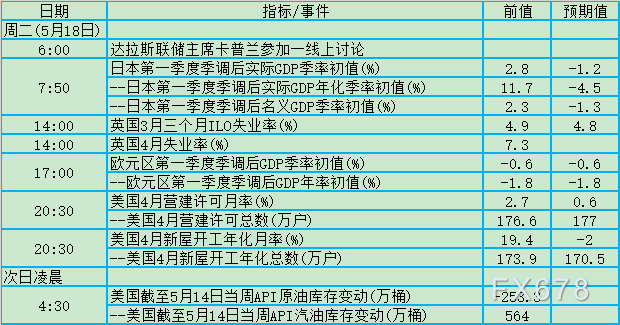 周二(5月18日)关键词:日本GDP、英国失业率、欧元区GDP、API