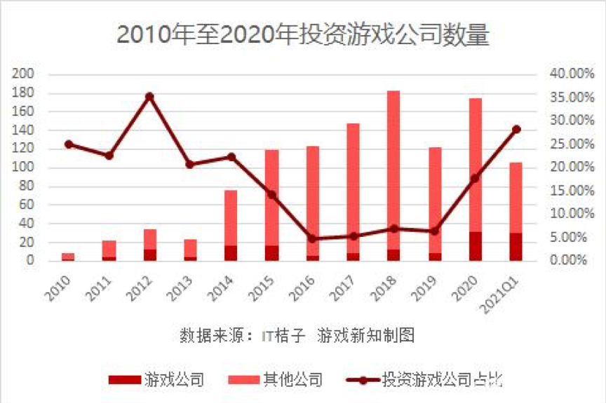 从2020年开始,腾讯开始加重投资各家游戏工作室的步伐,腾讯投资部、战略部、互动娱乐事业(IEG)群倾巢而出。据了解,仅 2021年第一季度腾讯便入股和收购近 30家游戏公司。