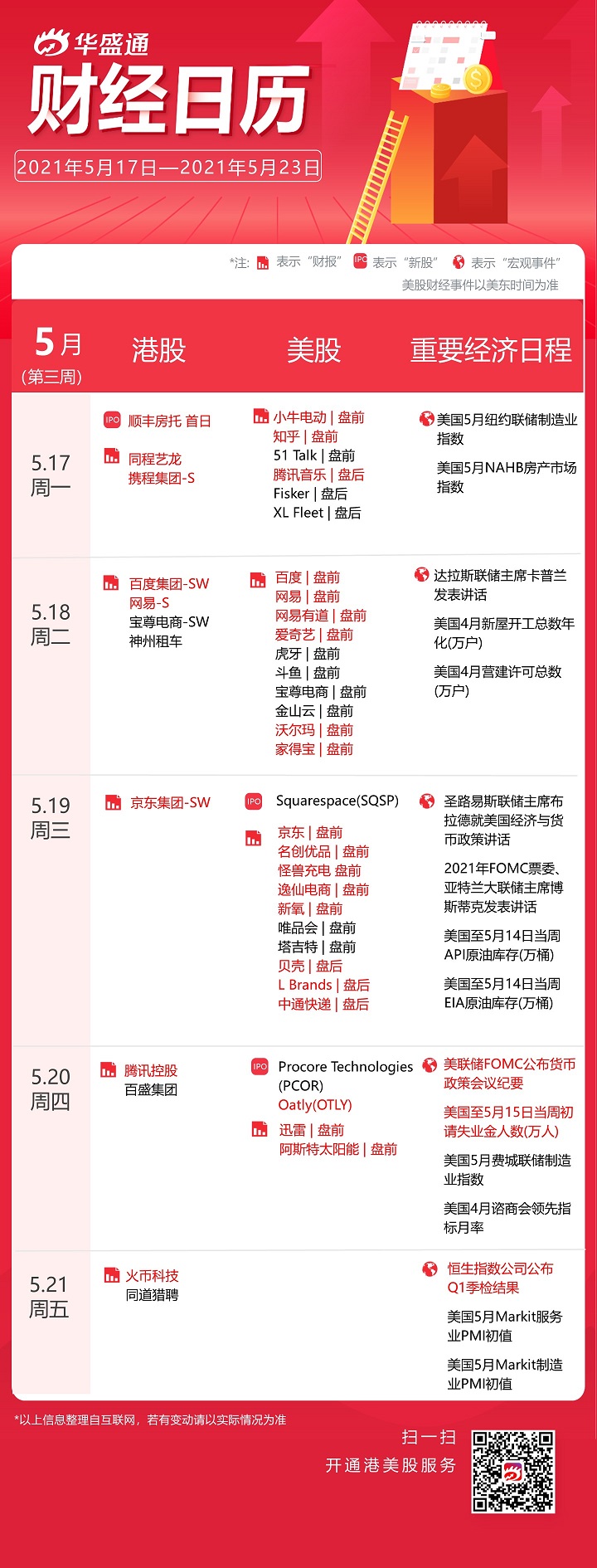 以上即为本周港美股及宏观资讯一览,祝新的一周投资顺利~