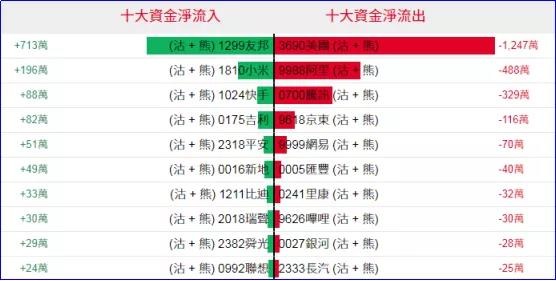 淡仓(认沽证及熊证)方面,上周五友邦、小米相关淡仓分别约713万、196万港元资金净流入;美团相关淡仓则录得约1247万港元资金净流出套现,阿里、腾讯、京东等相关淡仓也录得部分资金净流出。