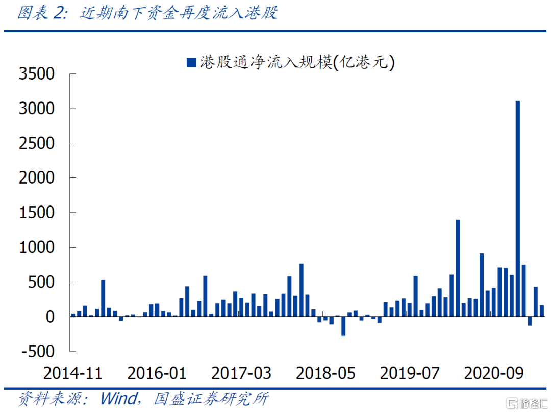 2、A股风险偏好逐渐修复,而港股市场依然萎靡,2月中旬以来甚至领跌全球。本轮港股大跌主要基于几方面的原因:1)美债利率快速上行,纳斯达克指数一度引领全球科技成长和高估值白马共同回调。2)去年下半年、尤其是今年年初南下资金大幅流入港股,引领港股牛市。但到了2月中旬,出于对国内市场流动性收紧的担忧,南下资金风险偏好收敛并出现回流,也导致港股市场承压。3)继4月10日向阿里开出182亿罚单,4月26日又宣布对美团立案调查。互联网反垄断监管强化之下,腾讯、美团、阿里等香港市场权重股大跌,拖累指数表现。4)去年至今年年初港股领跑全球,大幅上涨后也面临一定的估值压力。