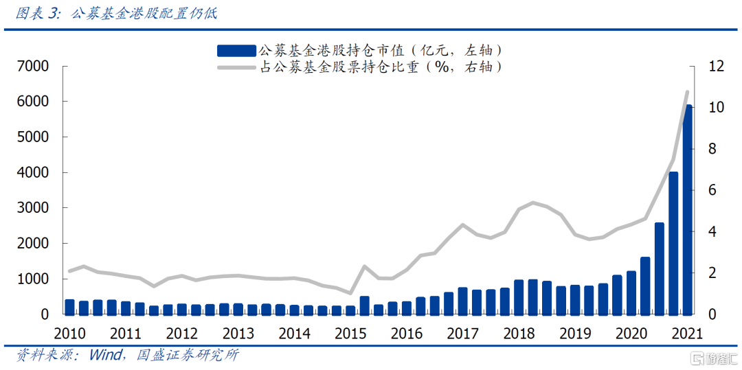 4、港股中长期配置性价比凸显,当前已是“黄金坑”。1)港股作为国内资金海外资产配置的“桥头堡”,其地位在很长一个时期内都无法动摇。尤其是,由于港股监管更为宽松,中国较为优质、能够代表和受益于经济转型升级持续增长的科技龙头大多在港股,具备明显的稀缺性和配置价值。2)当前国内资金仍显著低配港股,南下资金流入趋势明确。在新发公募已经很大程度上放开了港股投资比例的基础上,港股在公募基金股票持仓中的占比仍仅为10.75%,当前港股仍被显著低配。因此,港股作为国内部分优质核心资产的代表,在当前全球流动性依然宽松、美元贬值人民币升值、南下资金中长期持续流入趋势确定的背景下,将逐步从“黄金坑中”走出,当前已是配置时点。