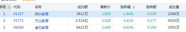不过,和新东方、中教控股、高教集团等走势相反的是,睿见教育越走越低,截至目前已经跌超9%,天立教育跌超3%,枫叶教育跌超1%,为何这些股票暴跌呢?
