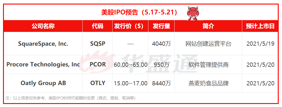 本周美股IPO市场预计将迎来3只新股,均属于各自行业的领先角色。其中较为大众熟悉的是网红燕麦奶Oatly,最近一次融资获得了黑石集团牵头的明星投资团2亿美元的投资,目前估值已接近百亿美元。话不多说,快来看看这周的新股都有哪些亮点吧: