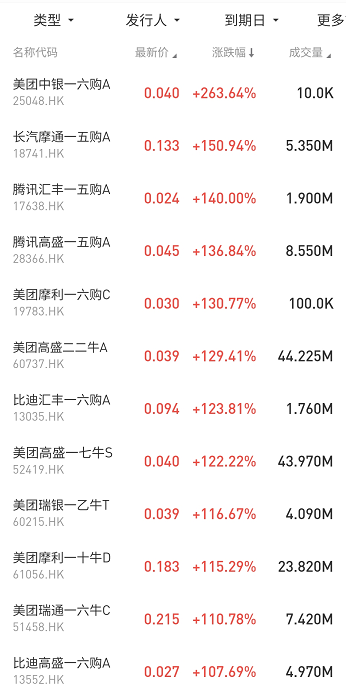 值得注意的是,美团7只牛证涨幅在100%以上(包含100%)