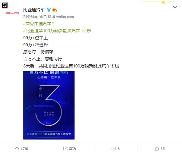 2、里程碑!比亚迪第100万辆新能源车将下线