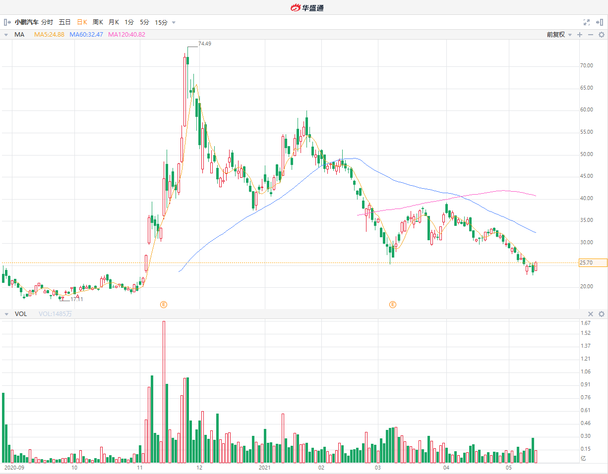 分析师维持小鹏汽车“买入”评级,目标价43美元。这意味着较5月14日收盘价25.7美元,仍有超过60%的上涨空间。