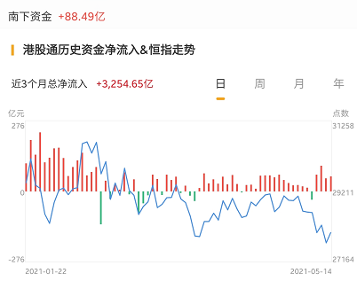 南下资金今日净流入港股高达88.49亿港元,而上周五为净流入超58亿港元。