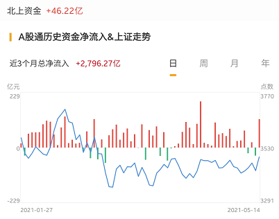 北上资金今日净流入46.22亿元,上周五为净流入超117亿元。