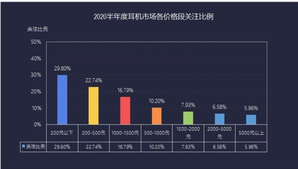 根据ZDC发布的2020半年度耳机市场各价格段关注度数据,一半以上消费者关心的是500元以下的产品。而正是中低端市场的拉动,才保证了2020年全球TWS市场同比增长78%的成绩。