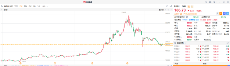 12月曝出的造车消息以及ARK的示范效应助推百度股价一飞冲天,但强心剂的效用毕竟不持久,在触及340美元最高点后,百度股价震荡下行,5月14日已跌破180美元关口,市值回落到600亿美元出头,来到“解放前”。