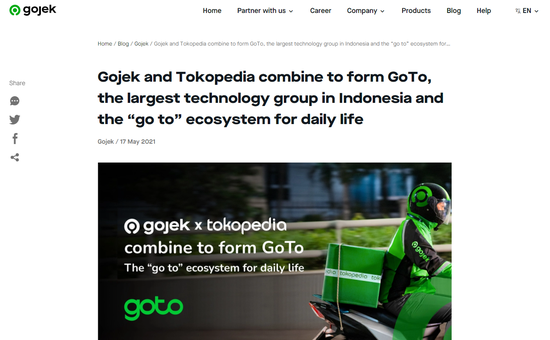 合并后的公司将被命名为“Goto”,将成为集叫车服务、食品配送和电子商务为一体、月活超1亿的互联网巨头。相当于Uber、PayPal、亚马逊、DoorDash的合体。