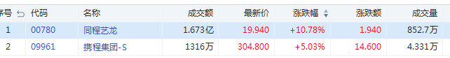 港股旅游及观光板块涨幅居前,同程艺龙涨近11%;携程集团涨超5%,公司拟定于北京时间2021年5月19日(星期三)8:00召开业绩电话会议 。