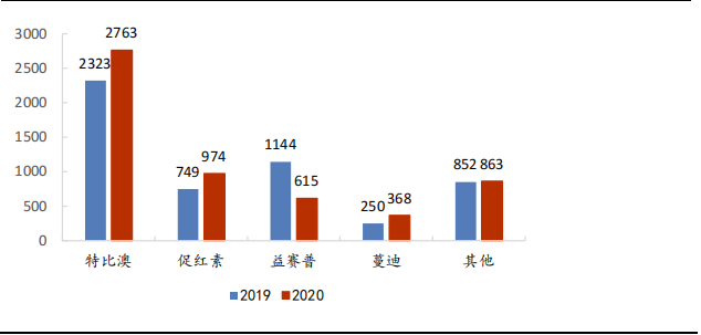 在2020年,公司的核心产品销售继续录得稳定增长。其中特比澳2020年销售额同比增长19%至27.6亿元;益比奥和赛博尔双品牌的促红素是国内唯一一家获得三种适应症的促红素,2020年销售同比大增30%至9.7亿元;蔓迪品牌在2020年销售额同比也是剧增47%至3.7亿元。