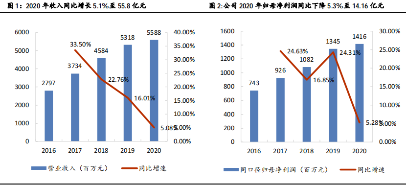 2020年由于受到疫情冲击且流感发病率相对降低的影响,公司利润出现了一定的下滑。不过总体营收仍高达55.88亿元人民币,同比增长5.1%;归母净利润为8.36亿元,同比下降14.2%(但在同口径统计规则下归母净利润为14.16亿元,同比增长5.3%)。