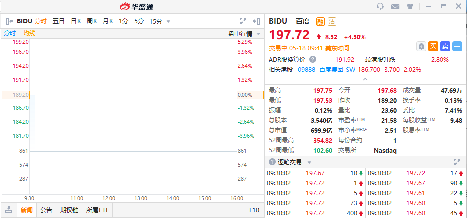 华盛资讯5月18日讯,部分公布财报中概股开盘走高,百度(BIDU)涨超4%,爱奇艺(IQ)涨超6%,网易(NTES)涨超2%。另外雾芯科技(RLX)涨3.7%