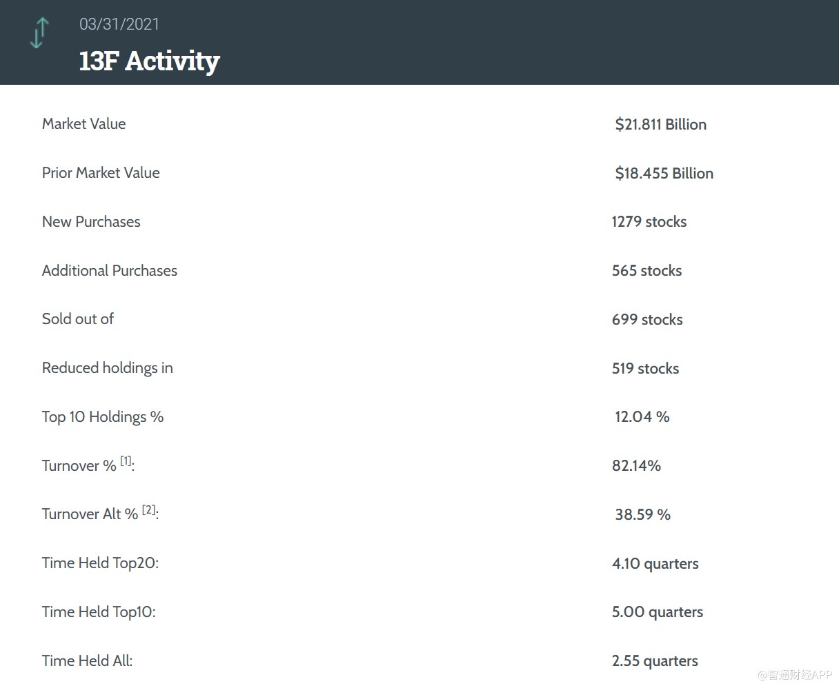 根据美国证监会(SEC)披露,对冲基金Marshall Wace, LLP递交了截止至2021年3月31日的一季度持仓报告(13F)。