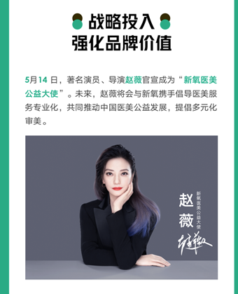 持续强化品牌护城河,新氧近日又有新举措。5月14日,著名演员、导演赵薇官宣成为“新氧医美公益大使”,赵薇将会与新氧携手倡导医美服务专业化,共同推动中国医美公益发展,提倡多元化审美。