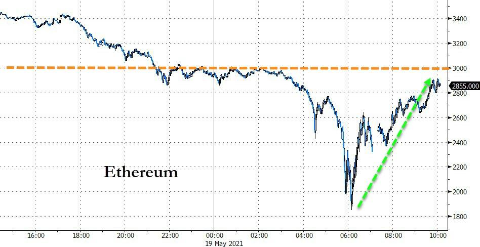 第二大加密货币以太币盘中跌幅超40%,后来收复了一半失地。