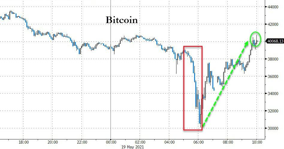 “早上暴跌31%,下午狂升33%”,周三比特币带着投资者坐了回“过山车”,在市值蒸发上百亿美元、导致主要加密货币交易所中断后,几个知名大佬的喊话帮助比特币上演了绝地反弹。
