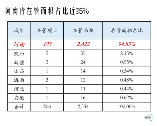 由于建业集团的主阵地就是河南,代建业务的在管项目也集中在河南省。