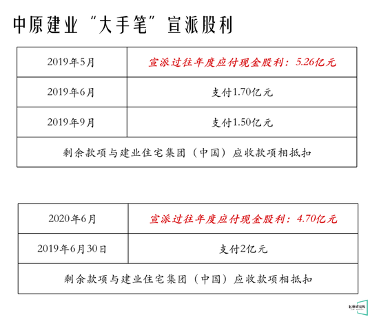 2019年以来,中原建业宣派应付现金股利合计9.96亿元。
