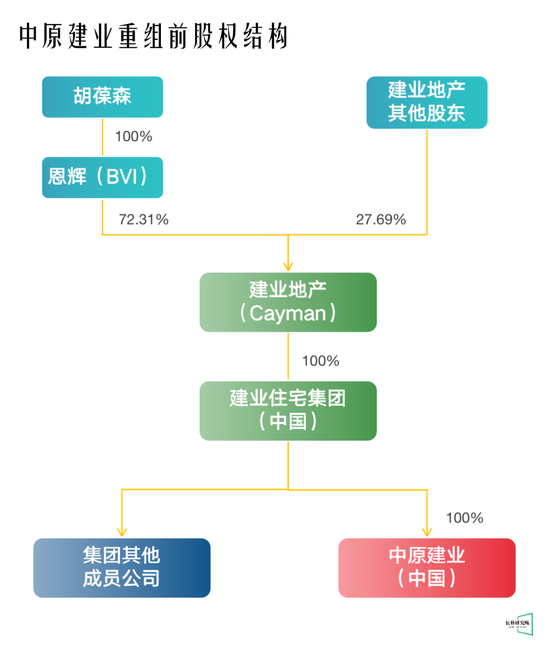 根据股权结构图,重组前,中原建业由建业地产全资控股。