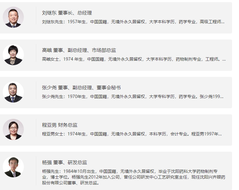 而A股的兴齐眼药管理层大部分都是国内制药的背景,缺乏较有说服力的海外前沿学术成绩。