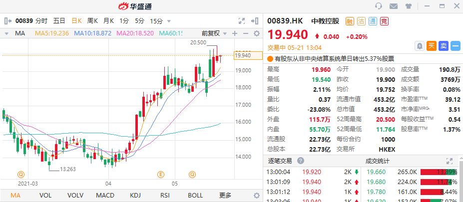 - 高盛发研报指,将中教控股目标价由21港元升6.2%至22.3港元,维持“买入”评级。报告称,公司上半财年表现好于预期,经调整纯利上升50%,高于该行预期。管理层表示公司现时可并购的项目共有七间学校,预期下半财年将会收购两所新学校。