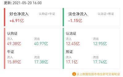 其中,窝轮总成交117.88亿港元,牛熊证总成交71.41亿港元。