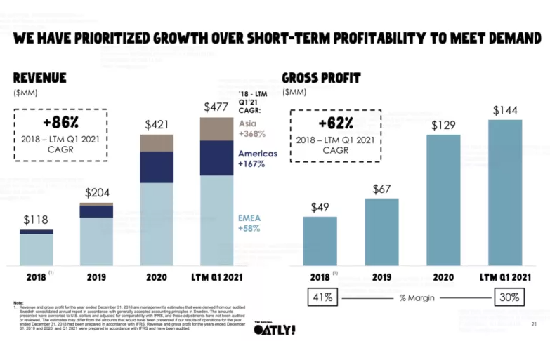据招股书,该公司2020年全年营收约为4.2亿美元,同比增长106.5%;毛利润约为1.3亿美元,同比增长94.1%。但因为公司继续投资于生产、营销、分销渠道和制造设施等因素,公司当年的亏损也在扩大。