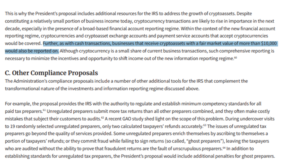 美东时间周四,美国财政部公布《美国家庭计划税收合规议程》报告,打击藏匿收入的美国富人,加密货币也被新规伤到,未来转账达1万美元需报告美国国税局。