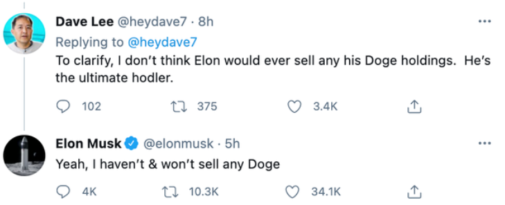马斯克称不会出售任何狗狗币
