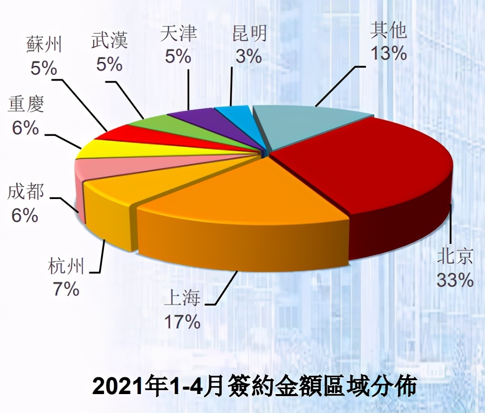 事实上,进入2021年,首创置业在销售端逐步发力。数据显示,2021年前4月,首创置业的销售额签约金额约251.2亿元,同比增长131.3%,完成800亿元销售目标的三成。从销售地区来看,首创置业在京津沪的销售占比约6成,延续了公司近五年的销售布局。