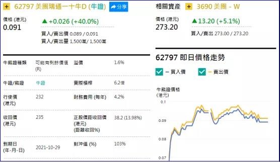 好仓(认购证及牛证)方面,周四腾讯、小米、阿里相关好仓分别约1669万、1487万及1068万港元资金净流入部署;美团相关好仓单日则见约1975万港元资金净流出套现,京东、比迪、网易好仓亦见部分资金净流出。
