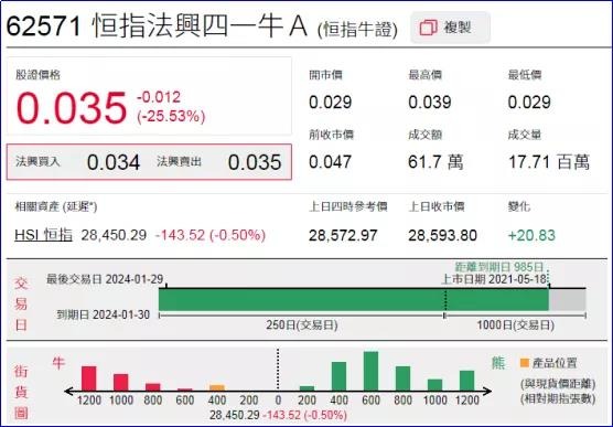 2、看错方向:恒指法兴四一牛(62571.HK),周四下跌25.53%。