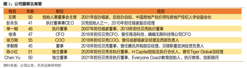 研报指出,贝壳治理结构完善,核心管理团队均在业内有较长从业经验,彭永东先生为首的核心管理层,参与包括链家网的成立和贝壳平台的成形,有能力带领公司继续深耕与成长。