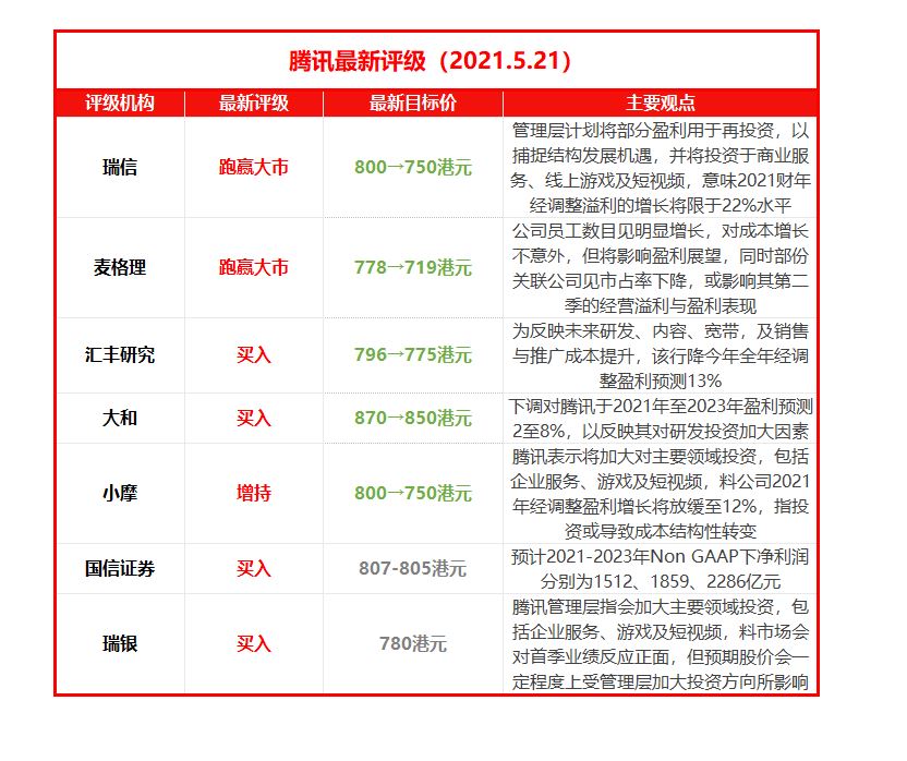 ►野村维持腾讯控股【买入】评级 目标价由780港元下调至731港元