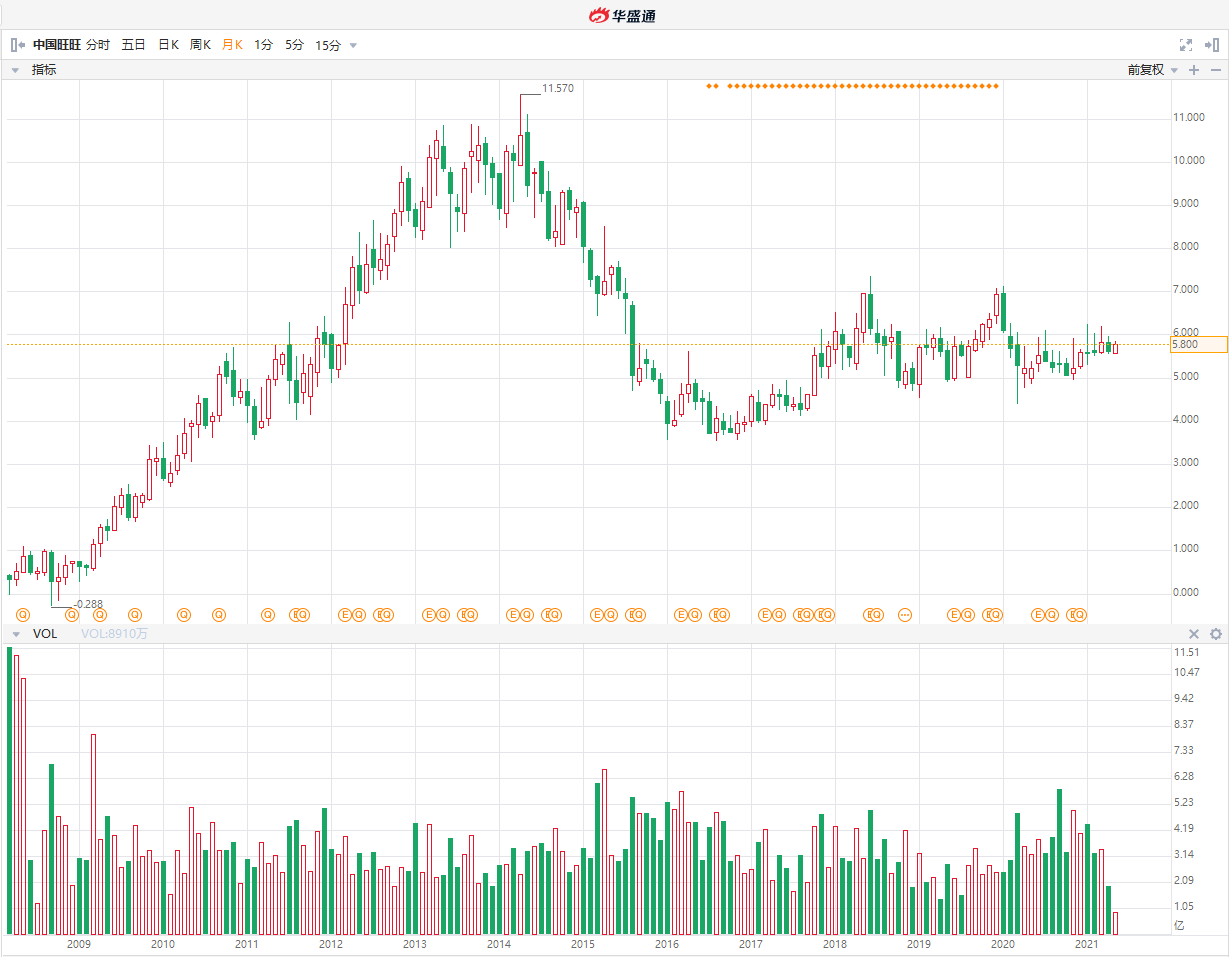 股价方面,中国旺旺自上市后一路走高,反映了其在大陆市场地位的扩张过程,但在2014年触顶之后开始下滑。近些年来,股价一直在5-7港元震荡,不温不火。近期,公司开始积极回购股票以增强市场信心。富瑞集团建议持有公司股票,给予其6.4港元的目标价。