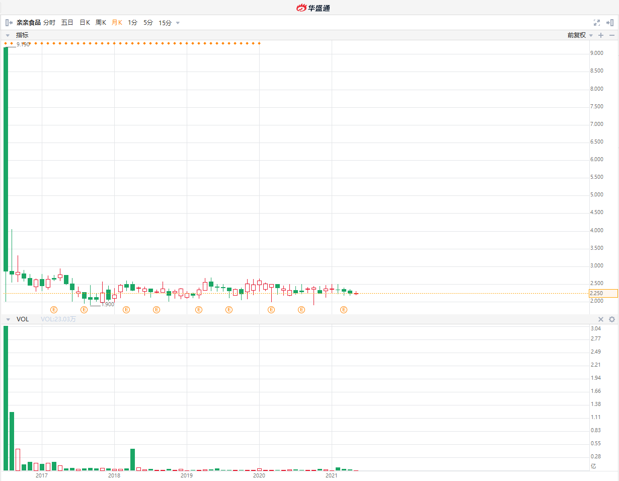恒安意识到,这条道路可能走错了。于是在2016年,恒安集团以介绍形式分拆亲亲食品上市,致力于让亲亲自己扩大品牌影响力,再次独立开展业务。但对由于食品安全问题而走下坡路的果冻市场,市场并不买涨。上市当天,亲亲食品股价暴跌65%。至今,公司股价仍在低位徘徊,且鲜有成交,人气涣散。