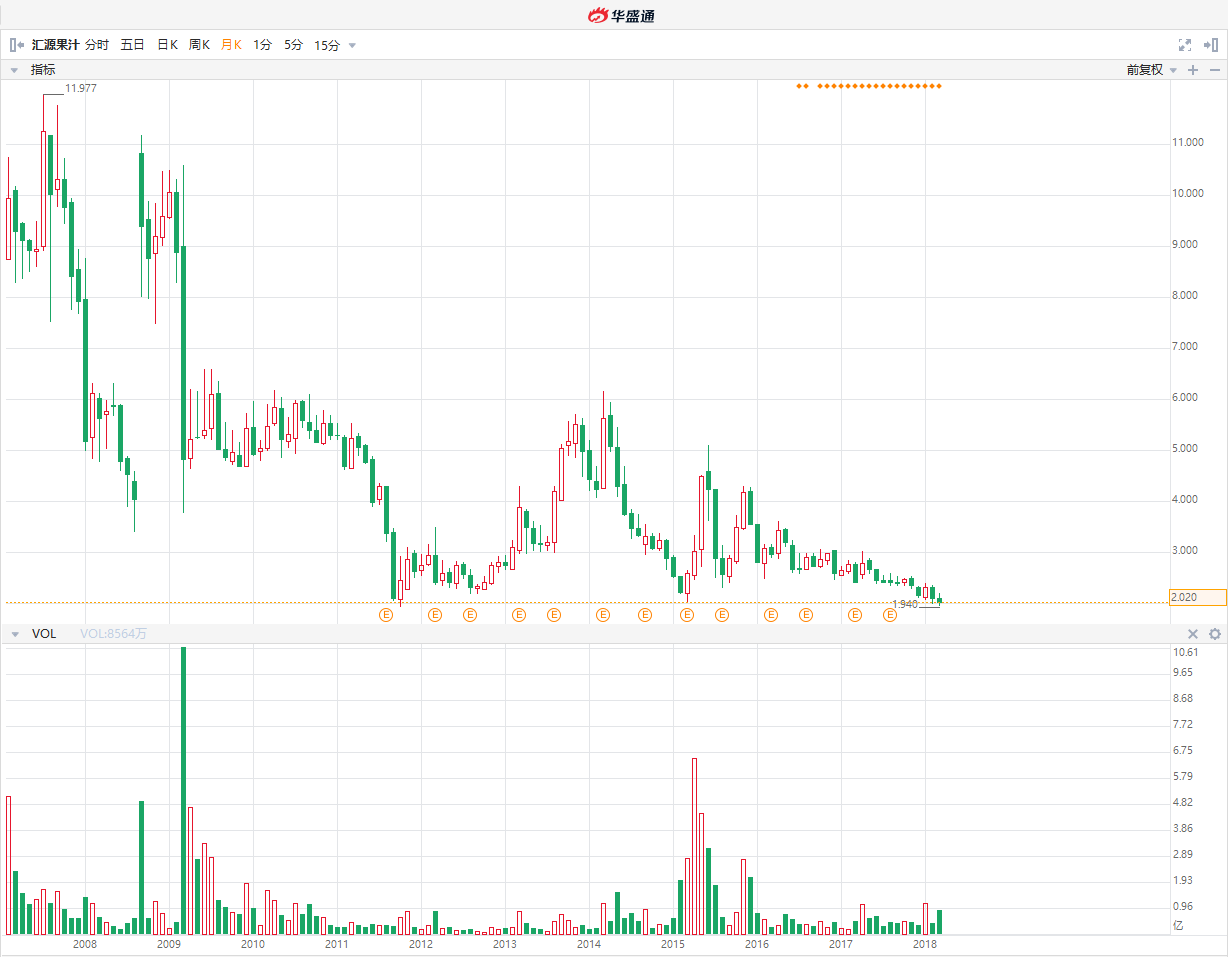 但事与愿违,中国商务部以反垄断为由否决了可口可乐的这笔收购。汇源果汁股价也因此在三个交易日暴跌近60%,并一蹶不振。2009-2016年,公司连续6年处于亏损状态,至2017年总负债已经高达114亿人民币。由于年年亏损且无力偿还债务,公司股票于2018年初开始停牌,并在今年年初被确认除牌,取消上市资格。