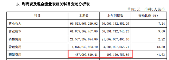 与1亿研发费用相比,飞鹤一年50亿的销售费用就有点刺眼了。