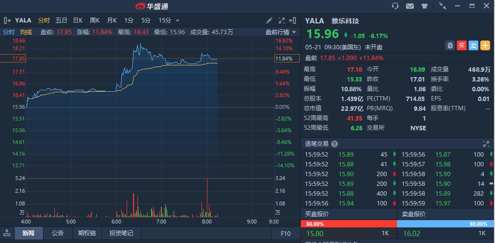 华盛资讯5月21日讯,美股盘前,“中东小腾讯”雅乐科技(YALA)盘前涨近12%,公司不久前回购价值1.5亿美元股份,以回应Gotham City的做空报告。
