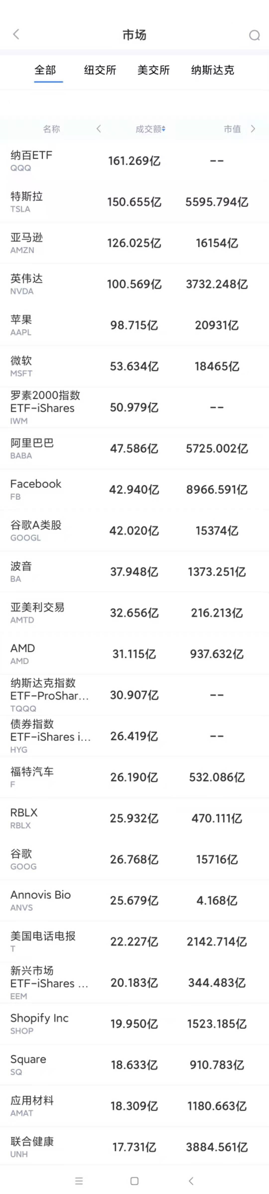 以下为美股当日交易最活跃的20只股票(按成交额):(截图来自新浪财经APP 行情-美股-市场板块 左滑更多数据)下载新浪财经APP