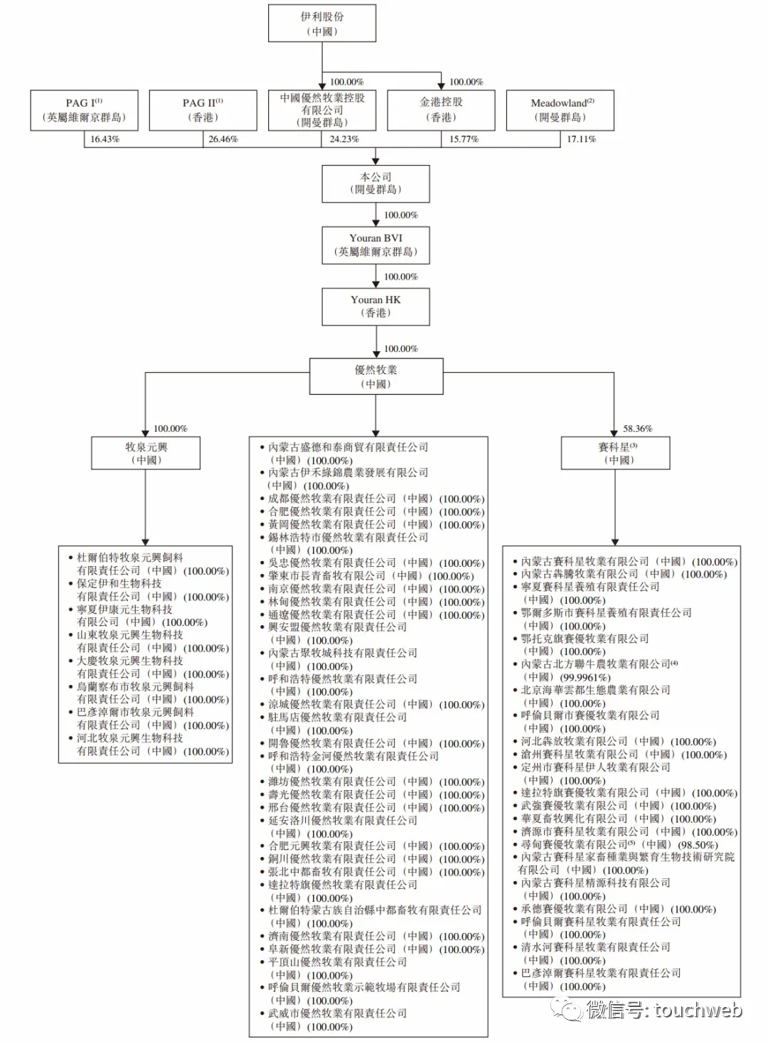 IPO前,PAG I持股16.43%,PAG II持股为26.46%,PAG一共持股为42.89%,此外,伊利持股40%,Meadowland持股为17.11%。