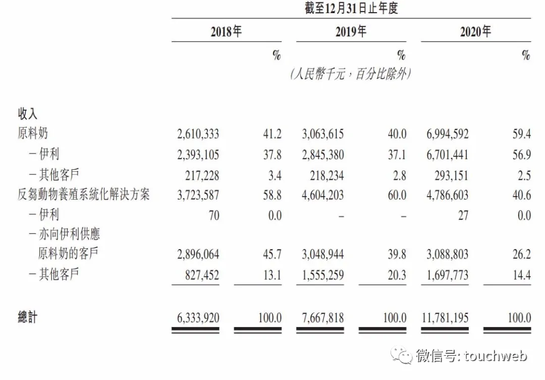 优然牧业主要收入来自原料奶和反刍动物养殖系统化解决方案。伊利是优然牧业最大的客户。